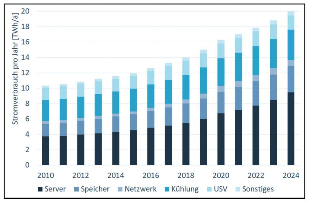 20. Stand und Entwicklung des Rechenzentrumsstandorts Deutschland: Gutachten im Auftrag des Bundesministeriums für Wirtschaft und Klimaschutz. BMWK-Projekt-Nr.: 115/21-45. Link. (Zugriff 18.02.25) ↩︎